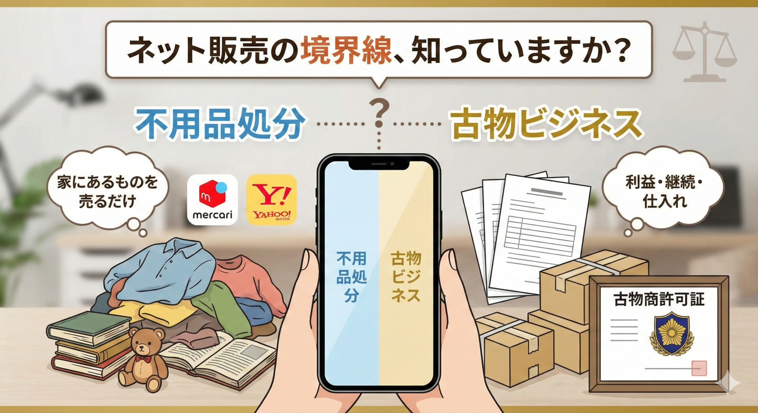 メルカリやヤフオクの副業に「古物商許可」は必要?不用品処分とビジネスの境界線